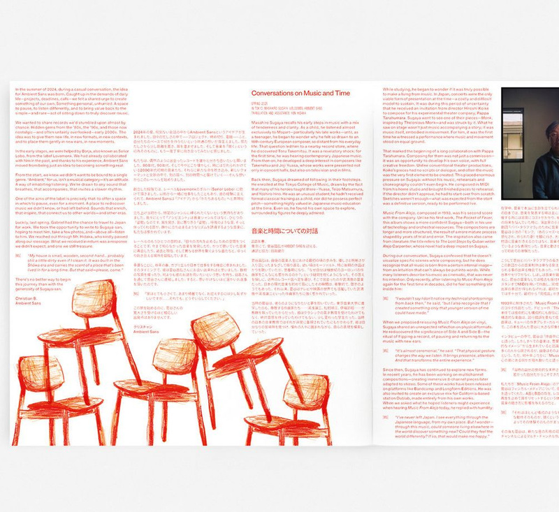 Pressed on heavyweight 180-gram black vinyl, this edition of Music From Alejo by Masahiro Sugaya offers the closest experience to the artist’s original intent. It includes a Japanese-style OBI strip and a printed insert featuring a new interview with Sugaya and photographs captured during our visit to his studio in Tokyo. A timeless, carefully produced edition designed for listeners who want a solid and beautifully crafted version of this subtle, atmospheric work.