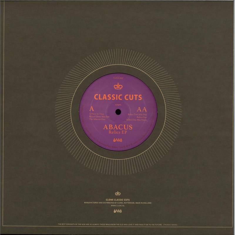 Abacus - The Relics E.P. - A Deep-House Masterpiece from 1994 Re-Released Somewhere around 1993 or '94, a quietly profound landmark in deep house emerged: The Relics E.P. by Austin Bascom, better known as Abacus, originally released on Chicago's Prescription Records (catalogue #006). With four tracks spanning roughly 26 minutes, this record has since gained cult status among DJs, collectors, and aficionados of the deeper, more soulful yet futuristic side of house music. Abacus crafted a quintessential deep-house journey: warm grooves, lush textures, scorched sub-bass, and a deeply introspective futuristic atmosphere. Bascom produced a record that never chased trends, but instead quietly built a lasting legacy. This record remained rare and highly sought after. In an era when house music was splintering into countless directions - even reaching the pop charts - The Relics E.P. planted its flag firmly in the underground, soulful terrain. Collectors and DJs continue to cite it as essential deep house, often describing it as ''one of the finest deep-house records of all time.'' Its scarcity and enduring emotional pull have only strengthened its legend. Decades on, The Relics E.P. continues to surface in DJ mixes and playlists, and as a touchstone for producers seeking that timeless balance of groove and emotion. Now, three Decades later, Clone Classic Cuts is proud to present a fully remastered edition of The Relics E.P., including previously unreleased material from the same recording sessions. Pressed on 140-gram virgin black vinyl, this edition restores and elevates a true cornerstone of deep-house history.