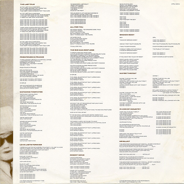 Track A1 is simply titled "Last Film" on the label, but "The Last Film" on the inner sleeve and rear sleeve.