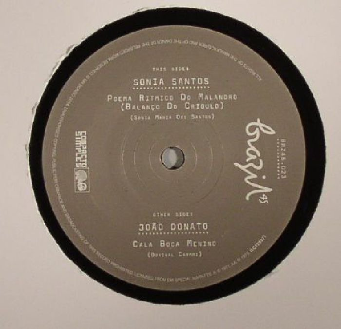 Killer samba from the Mr Bongo crew here on the 23rd edition of their ever impressive Brazil 45s series. Any samba scholar worth their salt will be familiar with Sonia Santos's wondrously psychedelic "Poema Ritmico Do Malandro (Balanco Do Crioulo)", which was originally released back in 1971 on the Copablanca label and has popped up every now and again on compilations. Drop this in the dance and watch it go crazy! On the flip Mr Bongo dig up the horn heavy funk jammer "Cala Boca Menino" from Joao Donato, a hugely talented pianist, singer and composer whose vast discography is worth further investigation!