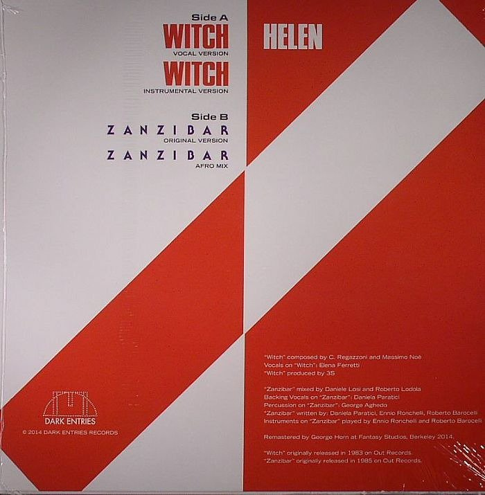 Dark Entries' series of leftfield Italo-disco reissues continues with a double-header from prolific Italo disco session vocalist Helen (AKA Elena Ferretti), whose early excursions on obscure Italian labels Out Records and Discomagic have previously been the sole preserve of dusty-fingered crate-diggers. This EP brings together two of her finest EPs; 1983's scarce "Witch" - an exercise in bubbling, synth-pop inclined Italo-disco - and 1985's arguably better-known "Zanzibar". It's arguably the sparse, cowbell-laden "Afro Mix" - think Cosmic Club era Daniele Baldelli - of this track that steals the show, though all four tracks are shot through with that European strangeness that often marks out the best early Italo cuts.
