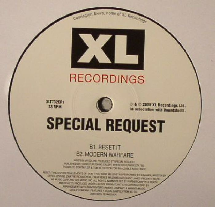 Paul Woolford's Special Request alias has proven to be his outlet for early 90's UK rave referencing nostalgia. He does it well, we must say, on this three EP series for XL. Merging the hallmarks of classic throwback sounds with the energy of modern techno much like German Rene Pavlowitz aka Shed. First track "Amnesia" sounds like a jungle track from '93/94 played on the wrong speed; using the typical Amen and Hoover sounds and slowing them down for usability by modern DJs. "Reset It" is more of the same albeit more of a nod to UK hardcore, complete but with an epic rewind to introduce a killer hands in the air piano and diva vocals. "Modern Warfare" lets a faint two step shuffle in the background give motion to a completely sick and evil sub-bass workout that's just got to be heard.