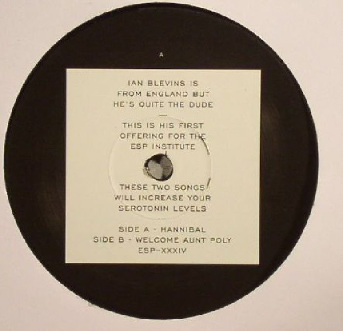 Having delivered a couple of quietly impressive solo EPs for Keep It Zen and Saft, as well as a highlight of Disco Bloodbath's label as one half of Al Gobi, Ian Blevins pops up on Lovefingers' ESP Institute with a pair of tracks that the LA label claim will "boost your Serotonin levels". Certainly, A-side "Hannibal" is a definite mood enhancer, with bubbling, high-pitched electronic melodies and spacey chords riding a fizzing, Detroit-influenced analogue house groove. Flipside "Welcome Aunt Poly" is an altogether deeper and drowsier affair, with rich, stretched-out pads reclining over a shuffling, cowbell-laden rhythm. It feels like the sort of track that could induce a "moment" when heard at the right time, despite its' relatively simple - if not less delicious - construction.