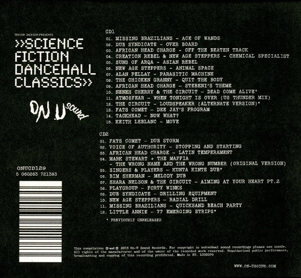 Following the recent - and rather fine - Sherwood At The Controls Volume 1 compilation, On-U Sound has decided to open up their sprawling vaults to original hipster and former Output boss Trevor Jackson. The resultant set, Science Fiction Dancehall Classics, gathers together classics, rarities and previously unheard material from the label's peak years in the 1980s. The collection does a brilliant job in focusing on the spacier and stranger end of Sherwood's production work, where heavy dub rhythms are supplemented by intergalactic synthesizers, hazy African drums, industrial dirt, post-punk noise, synth-pop stabs, freestyle electronics and deep electrofunk influences. There's much to enjoy across the two discs, including rare or unheard early material from Neneh Cherry, Shara Nelson, Atmosfear and Tackhead. Brilliant stuff, all told.