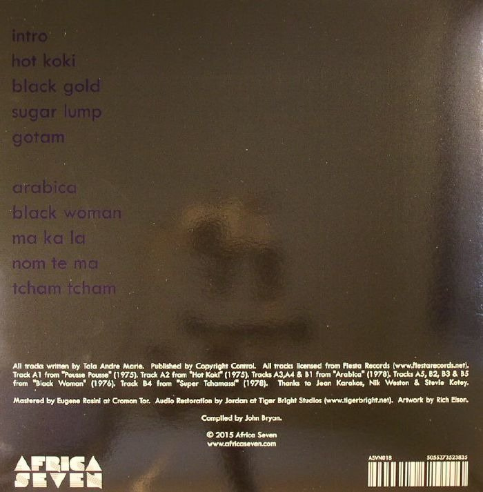 Tala AM (or Tala Andre Marie to give him his full and proper name) was born in Bandjoun in Cameroun in 1950. Talas life initially wasn't easy, he becomes blind at an early age and has lost both his mother and father by the age of 12. He then went on to make his first guitar by hand and form his first band "The Rock Boys" by the age of 17. Shortly after he meets the powerhouse of Camerounian music at the time Manu Dibango, a pivotal moment. With help, he re-locates to Paris and signs a contract with Fiesta Records. The first fruit of those labours is his debut album "Hot Koki". The lead track (and highlight of this compilation) is "Hot Koki" it is a powerhouse of funk guitar, soul and infectious afro rhythms. Fast forward to 1974 and the famous "Rumble In The Jungle" fight between Muhammad Ali and George Foreman. The story goes a little something like this... At an accompanying musical event we find James Brown and Tala AM. JB Hears Hot Koki and creates a remarkably similar sounding track "The Hustle" (check it out side by side if you have the time). Fast forward another 40 years. Time to take a look back on the funkier moments of Tala. This is not a "best of" Tala, that has already been done. Want to get into Tala's famous Tchamassi sound or do some "bend skin" beats... well check out the other compilations. Here at Africa Seven (and in this case) we are headed for destination funk. The musical topic inevitably leads us to the 70's and we borrow our super slick source material mainly from the albums Tala made for Fiesta Records from 1973 to 1978. We open up the bombastic brass, swinging basslines and all out groove of Hot Koki (well after a little intro ditty gem). Then its on to the one of the highlights of "Arabia" album "Black Gold". This track swoons groove. Layers of picked and choppy guitar and on point drumming. "Sugar Lump" is next which sticks to the formula of the previous track but adds in catchy vocals. Mining into the cave of delights that is the 1978 "Black Woman" album we then follow up with the driving afro beat grooves and stabby brass of "Gotam" and the boogie flowing grooves of "Black Woman" and the frenetic and driving grooves of "Ma Ka La". We round things off with the stabby clavi-funk of "Nom Te Ma" and the ultimate groovy funk-riff closer (and ear worm) Tcham Tcham. So there you some slices of pure funk from a master. Tala's role of awards and achievements is long and impressive (check his Wikipedia), Knight of Valour of Cameroun, SACEM awards and his opening of a music school in Douala... However.. we feel these musical masterpieces are right up there with his finest achievements.. A true man of music.