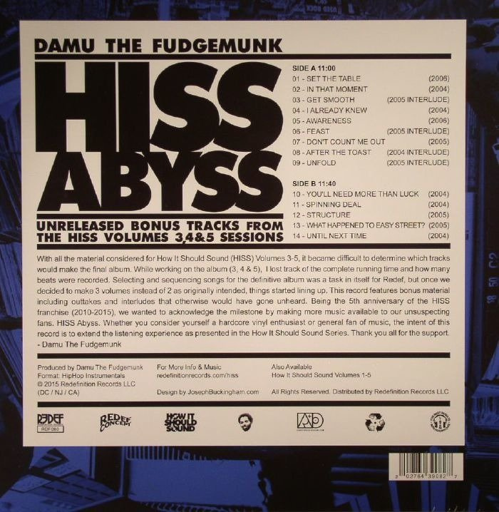 Hip-Hop’s best instrumental series, How It Should Sound, continues to expand with HISS ABYSS, a welcomed surprise from Damu The Fudgemunk. The project features unreleased bonus tracks from the HISS Volume 3, 4 & 5 sessions in the form of a new 10” EP.