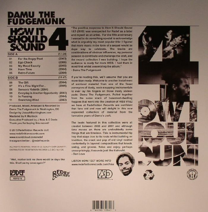 The all time best selling instrumental hip-hop series, How It Should Sound, is finally back in effect starting with Volume 4. The (previously unheard / unreleased) beats featured in this collection were all created between 2003 and 2007 and although time moves on there are undoubtedly some things that are timeless. This is instrumental hip hop that stays true to its roots whilst building on tradition, the crack and pop of old vinyl nestled contentedly in layered compositions that knock, swing, and groove. Relax and enjoy: perhaps unsurprisingly, it sounds just like it should.