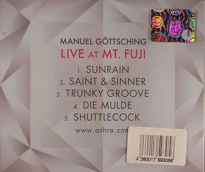 Manuel Göttsching Live in a terrific Japanese setting: Mount Fuji. Concert from 2006. Includes high class Sound Recording and highly sought after tracks like “Shuttlecock” and many more. Manuel Göttsching may not have released as many albums in recent decades as he did earlier in his career but when he does release something new, it’s always something special. Manuel’s latest release was recorded live in April 2006 during an excellent solo concert near Japan’s Mount Fuji. Manuel performed the entire concert alone accompanied by stunning visuals by a polish graphic artist and he also dug into his back catalog coming up with new arrangements of classic material. The album opens with “Sunrain” which was originally from the 1976 classic “New Age of Earth". The familiar hypnotic sequencer pattern is already in place however on this new version, Manuel takes it in a slightly different direction and extends the piece to nearly 15-minutes."Saint and Sinner” is a more recent piece, which was originally heard on the 2005 release “Concert for Murnau". This laid back piece is taken a step up from its studio counterpart as Manuel adds a bluesy Clapton-esque guitar lead that wasn’t there before."Trunky Groove” is a brand new piece composed for this concert and is a showcase for the psychedelic music style that was the norm for Manuel back in his very early days in Ash Ra Tempel. A techno-style rhythm is accompanied by a long drone and intense orchestrations before giving way to an effects-drenched guitar solo. “Die Mulde” is a 20-minute excerpt from Manuel’s long-form 1997 piece of the same name. It begins with the “Die Spiegel” section of the piece and shifts into the closing “Zerfluss” movement. As with “Saint and Sinner", Manuel adds a guitar lead which wasn’t in the original version. Finally, to close the album, we have yet another arrangement of the classic “Shuttlecock” which originally is from the 1977 masterwork “Blackouts".
